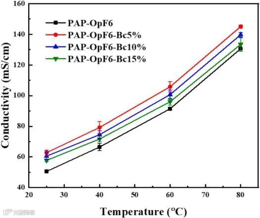 图5 PAP-OpF6-Bcx电导率随温度的变化曲线