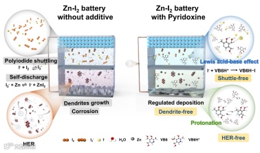 图1. VB6对Zn-I2电池调控的机理示意图