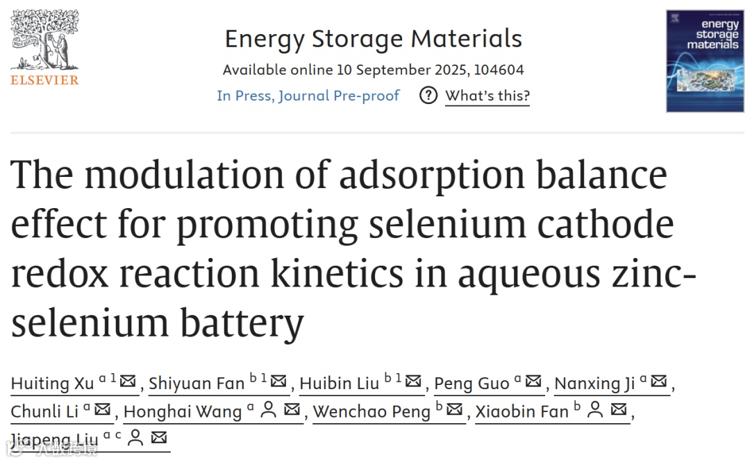调控吸附平衡效应促进水系锌硒电池氧化还原反应动力学