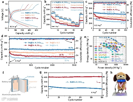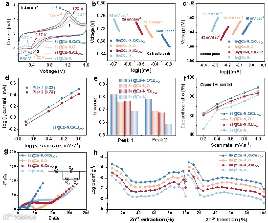 图3. 电化学性能测试,证实了Cu-N4O/CuACs使水系Zn-Se电池表现出最快的反应动力学。