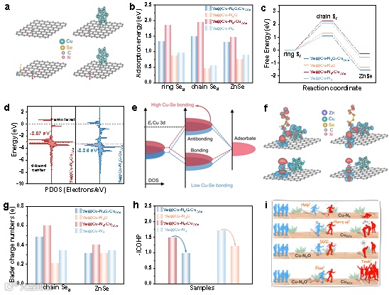 图5. DFT计算,揭示了Cu-N4O/CuACs的吸附平衡效应对水系Zn-Se电池的催化作用机制。