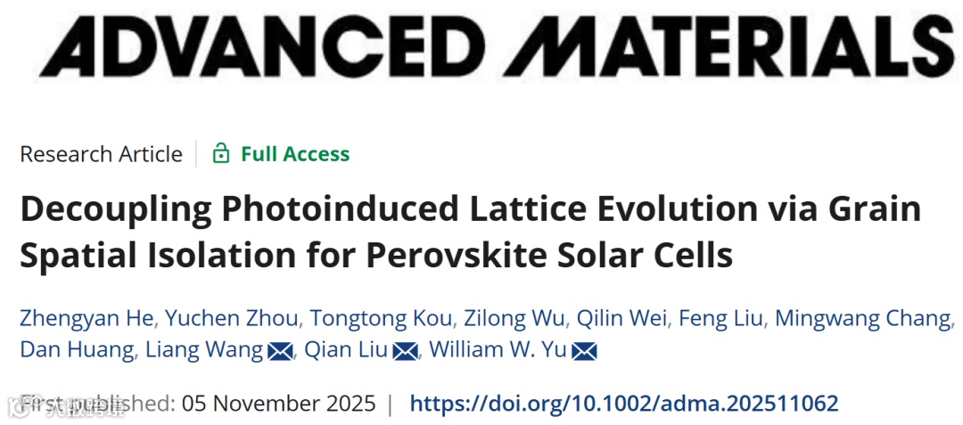 通过晶粒空间隔离实现钙钛矿太阳能电池的光诱导晶格演化解耦