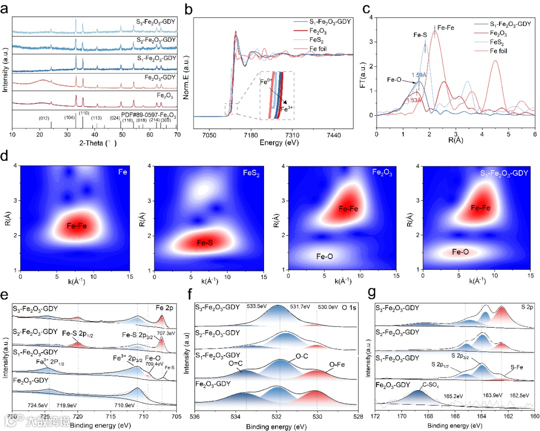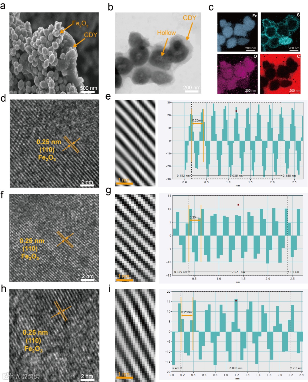 图2. (a) S1-Fe2O3-GDY的结构和成分表征