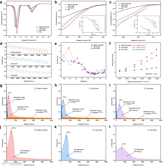 图3. 钴/铈双单原子催化剂和对比样品在硫还原反应中的电催化性能。