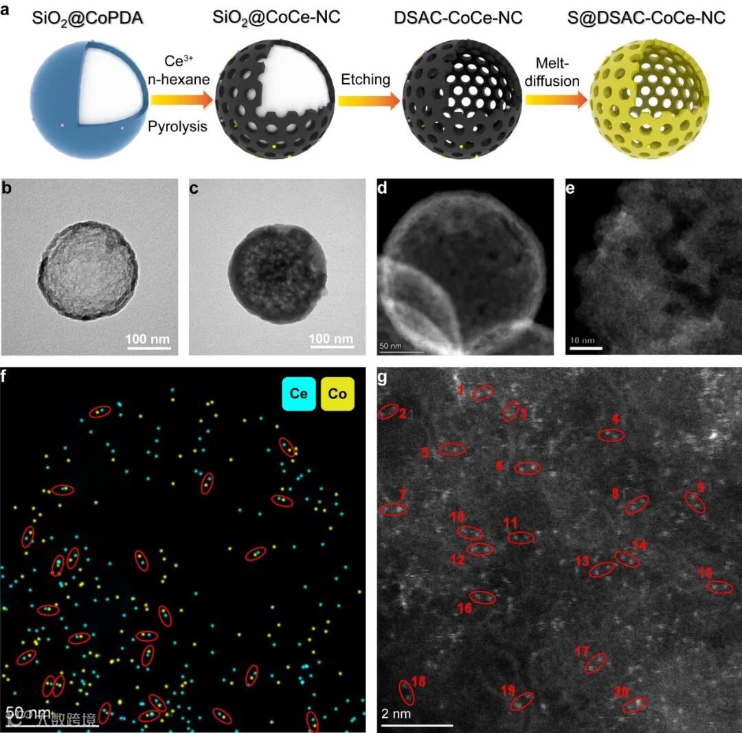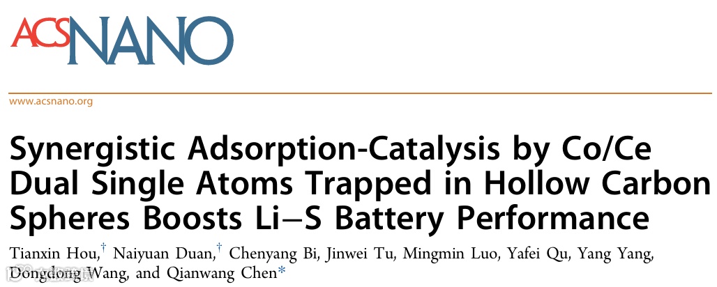 空心碳球负载钴/铈双单原子通过吸附-催化协同效应提升锂硫电池性能