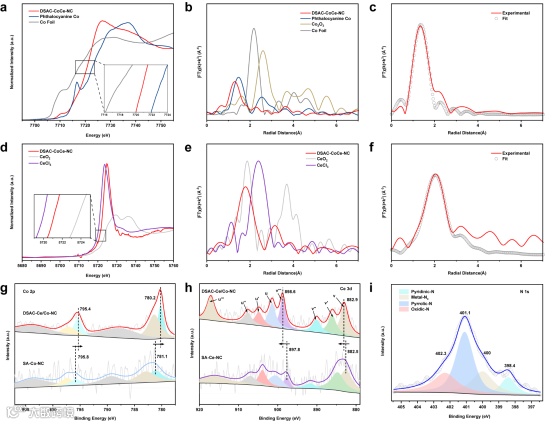 图2. 钴/铈双单原子催化剂的同步辐射和XPS表征。
