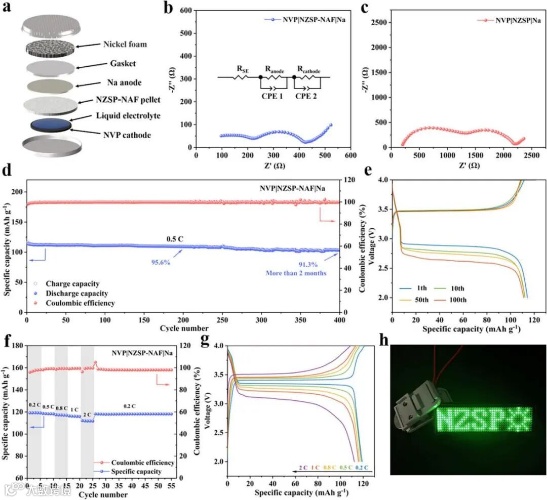 图5. NVP|NZSP-NAF|Na全电池性能测试