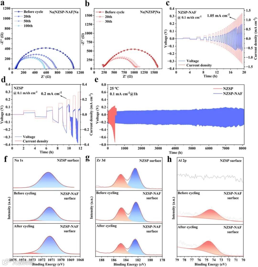 要点二:NZSP-NAF电解质循环性能NAF填料在晶界处形成电子阻挡层,抑制了Na⁺的局部还原与钠丝成核