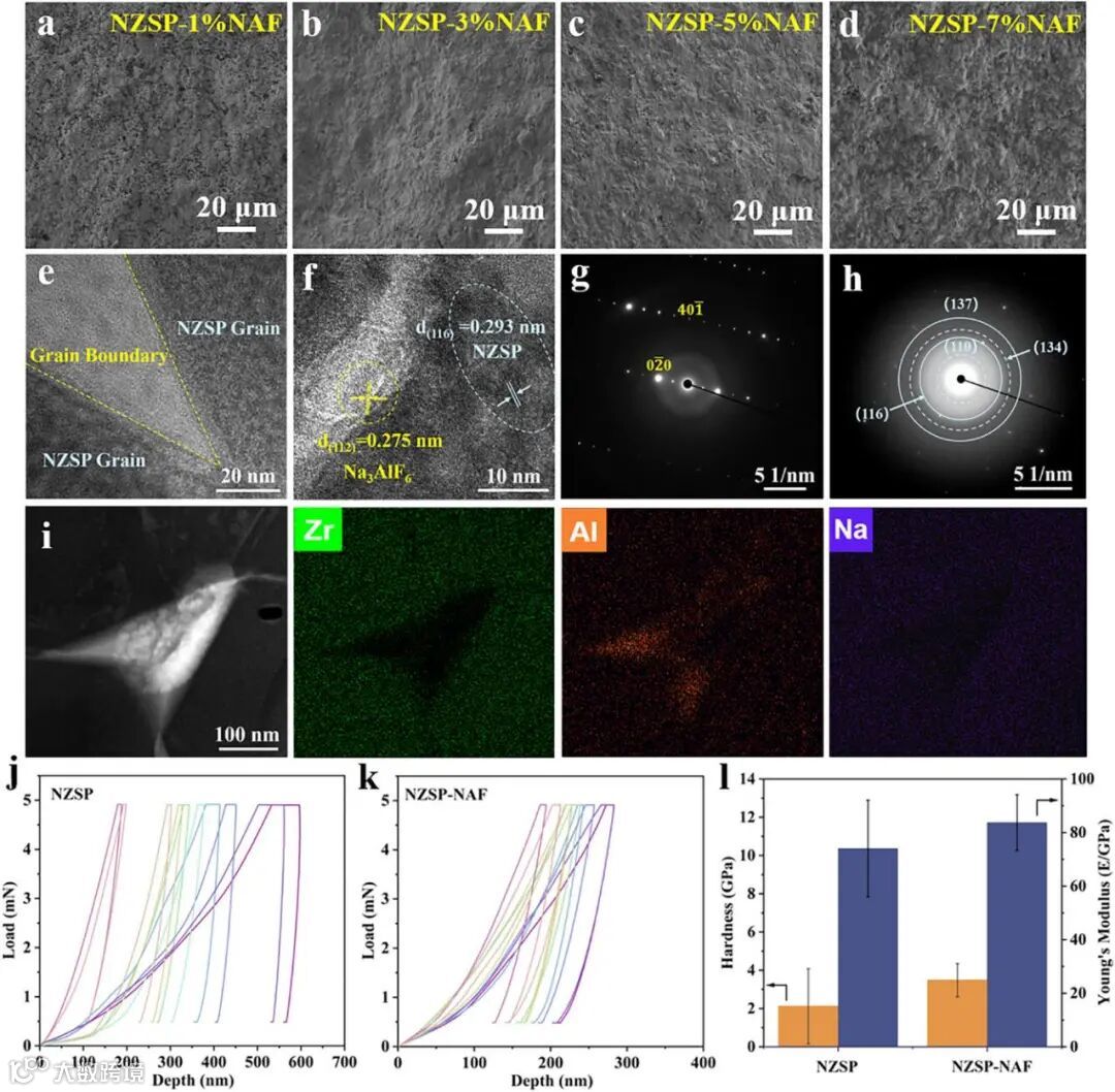 图2. NZSP-NAF电解质晶界第二相表征及机械性能测试