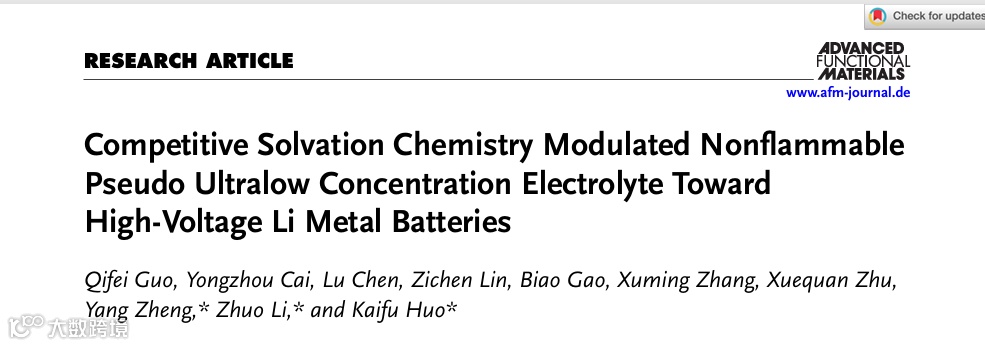 竞争性溶剂化化学调控不燃赝超低浓度电解液用于高压锂金属电池