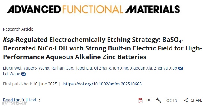 Ksp调控的电化学蚀刻策略:具有强内建电场的BaSO4功能化NiCo-LDH实现高性能水系碱性锌电池