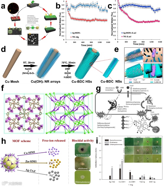 在疾病预防领域,MOF展现出多样化的应用前景。作为高效消毒剂,银、铜、钴等金属基MOF能释放金属离子或生成ROS,快速杀灭细菌与病毒。例如Ag-MOF膜对大肠杆菌的抗菌率接近100%,且具有长效抗菌特性。同时,MOF基自清洁材料可通过光催化、电催化或声催化实现自清洁功能,如ZIF-8在模拟太阳光下可灭活99.9999%的大肠杆菌,为医疗环境的清洁防护提供了新方案。