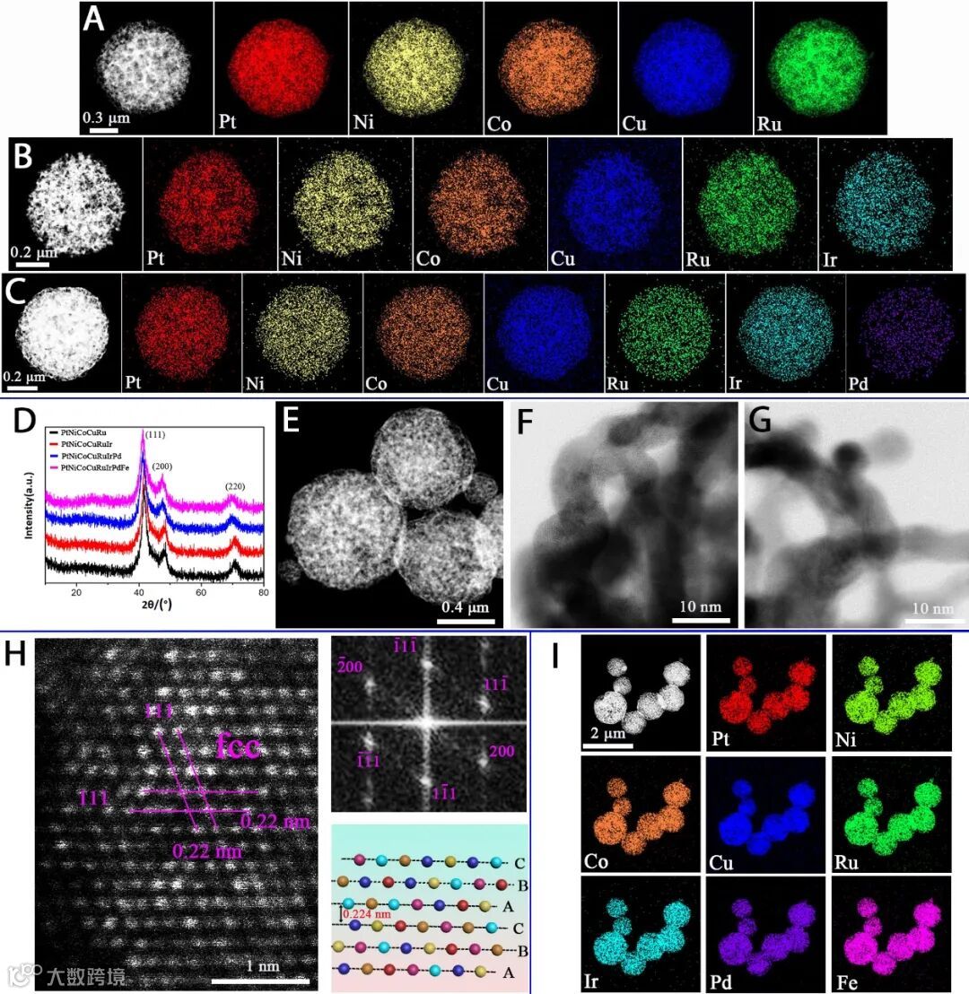 材料库拓展:成功合成 PtNiCoCuRu、IrNiCoCuFe、PtNiCoCuRuIrPdFe 等多元合金,元素兼容性覆盖贵金属(Pt/Ru/Ir/Pd)与过渡金属(Ni/Co/Cu/Fe)。