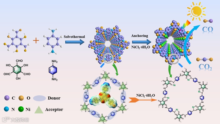 图1. Ni-tp-COF的设计构建及其光催化CO2还原示意图