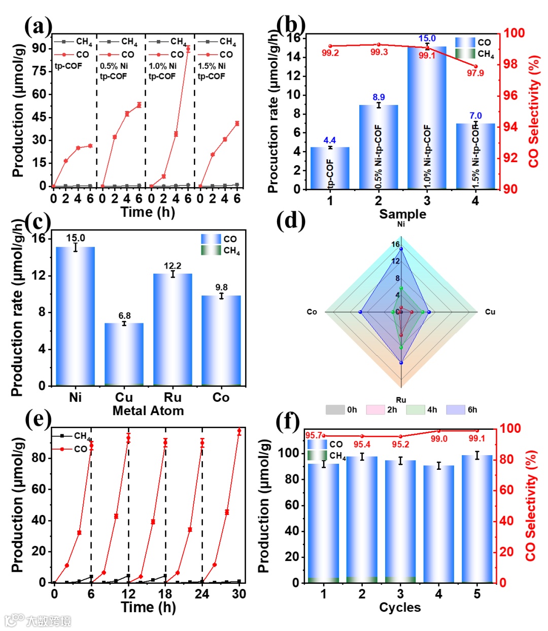单原子Ni锚定共价有机框架(tp-COF)与极化微环境的协同构建,为光催化CO₂还原技术开辟了多维优化路径。前者通过原子级分散的Ni活性中心与COF载体的刚性限域效应,精准调控反应路径,提升CO选择性及循环稳定性;后者借助界面电场与缺陷工程的动态耦合,强化电荷分离效率并降低反应能垒。未来,通过深度融合单原子位点的电子特性与极化微环境的定向调控能力,有望突破传统催化体系中活性-选择性-稳定性的“跷跷板”瓶颈。进一步探索原子尺度活性中心与宏观极化场域的跨尺度协同机制,或将为设计高效人工光合系统、实现碳循环闭环提供革命性策略,推动光催化CO₂资源化实际工业应用。