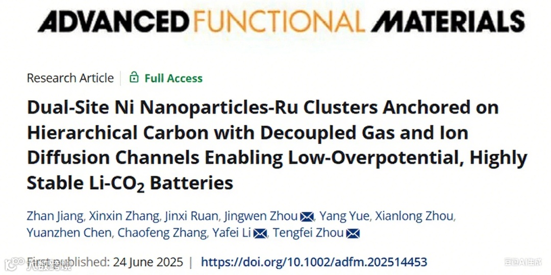 双活性位点正极中气体与离子扩散解耦构筑低极化、高稳定Li-CO2电池