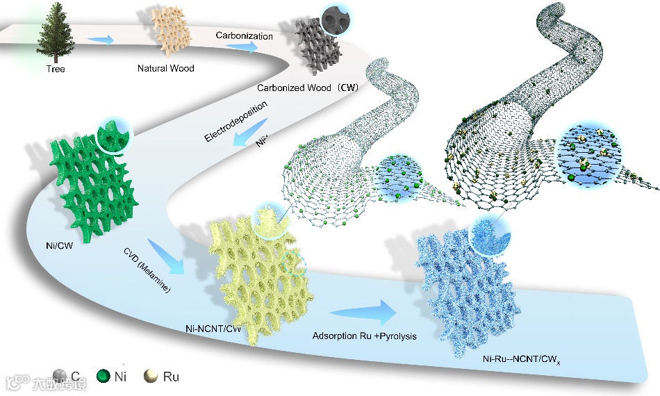 图1. Ni-Ru-NCNT/CWX的制备流程图。