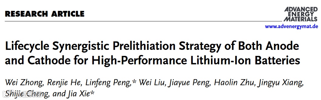 正负极协同全生命周期预锂化策略用于高性能锂离子电池