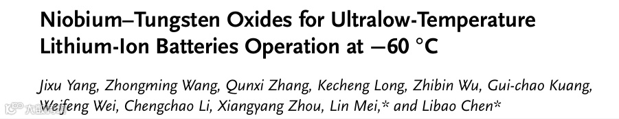铌钨氧化物助力−60℃超低温稳定运行锂离子电池