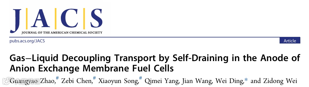 近日,来自重庆大学的魏子栋教授与丁炜教授团队在国际知名期刊《Journal of the American Chemical Society》上发表了一项标题为“Gas−Liquid Decoupling Transport by Self-Draining in the Anode of Anion Exchange Membrane Fuel Cells”的突破性研究,通过设计自排水阳极催化层(SD-ACL),成功实现气液解耦传输,为AEMFC水管理提供了创新性解决方案。