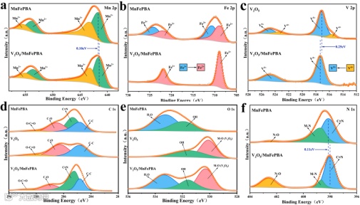 图3. MnFePBA,V2O5和V2O5/MnFePBA催化剂的XPS光谱。