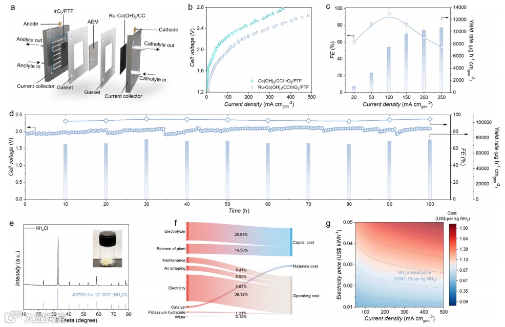 氨的法拉第效率(FE)高达96%