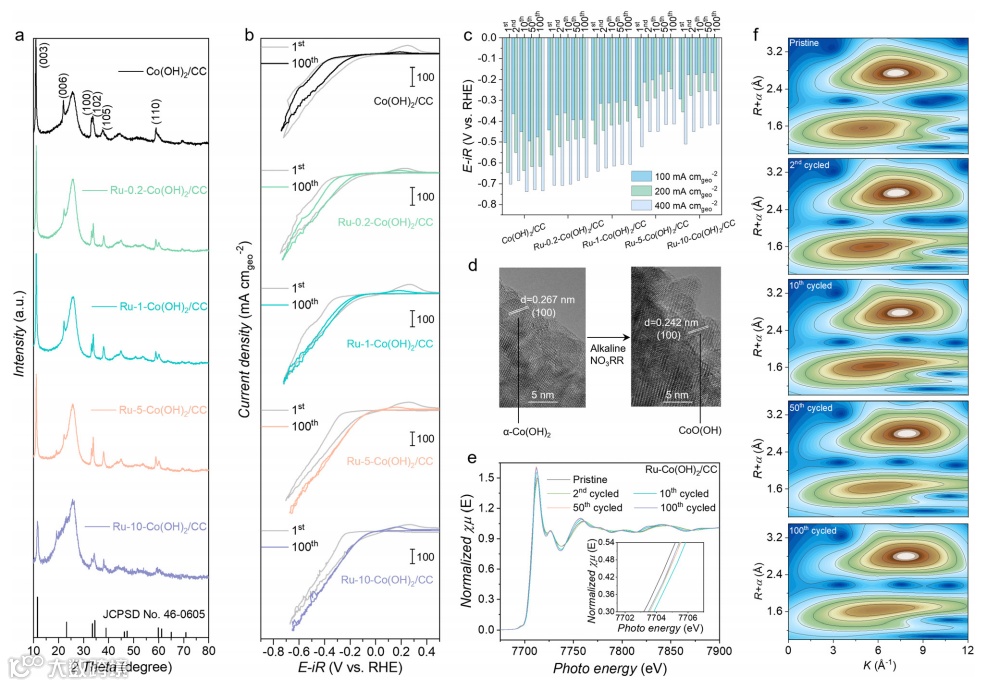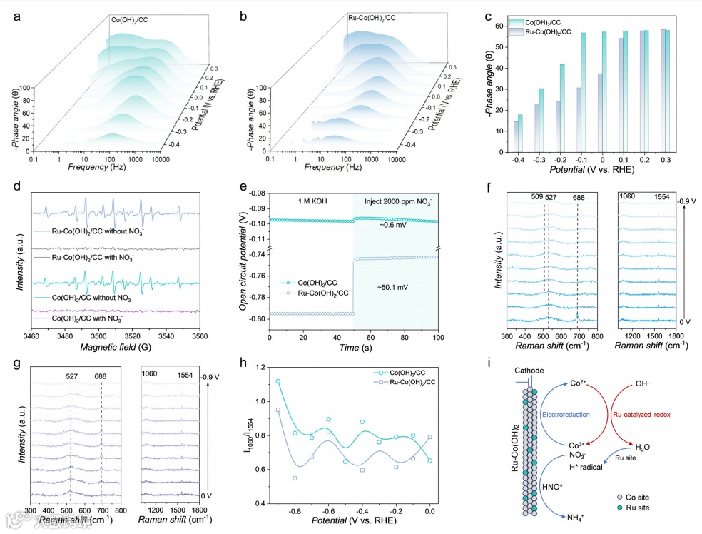 图1. 硝酸根还原反应过程期间 Ru-Co(OH)2上的相变