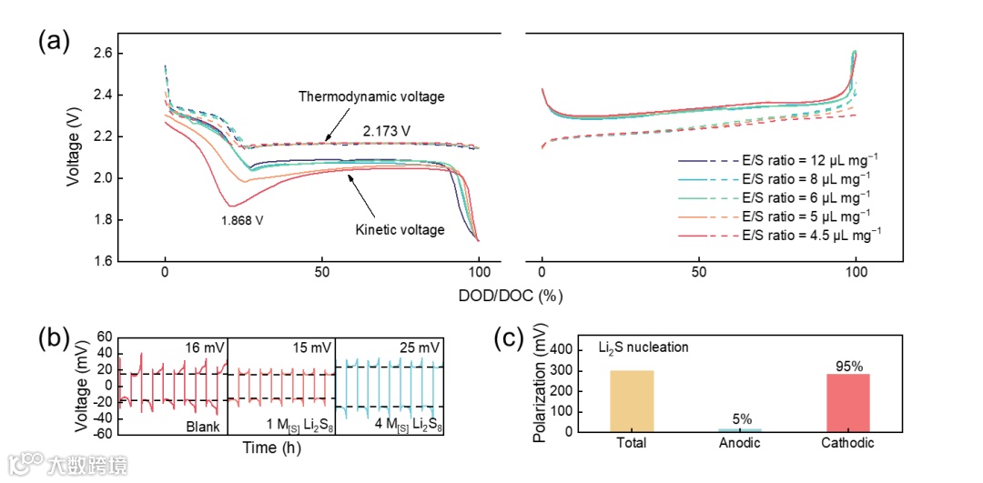 图2. 低电解液条件下硫氧化还原动力学评估