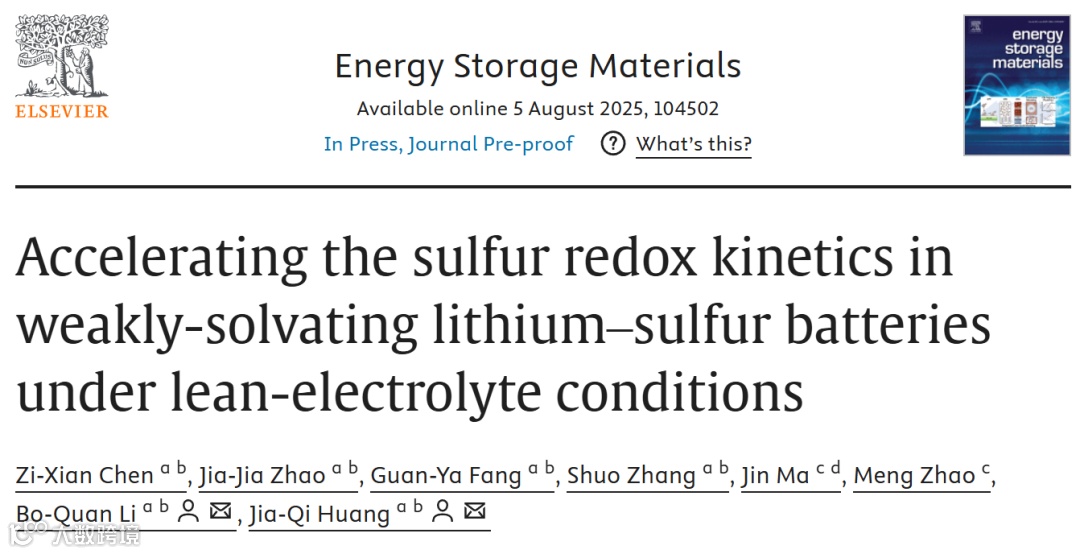 锂硫电池因具备2600 Wh kg−1超高理论能量密度受到广泛关注。现阶段,受限于多硫化锂中间产物的腐蚀,锂硫电池的循环寿命难以满足实际应用的需求。弱溶剂化电解液通过降低多硫化锂的反应活性,能够有效抑制腐蚀并延长锂硫电池的循环寿命。然而,弱溶剂化锂硫电池在低电解液条件下电池极化显著增加,放电比容量衰减,高比能电池实现困难。因此,需要对弱溶剂化锂硫电池在低电解液条件下的动力学进行系统评估,以进一步指导动力学促进策略设计,实现高比能长循环的锂硫电池。