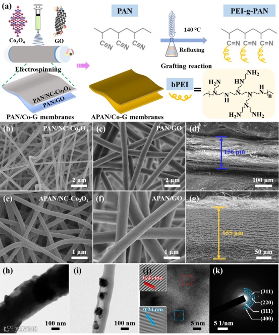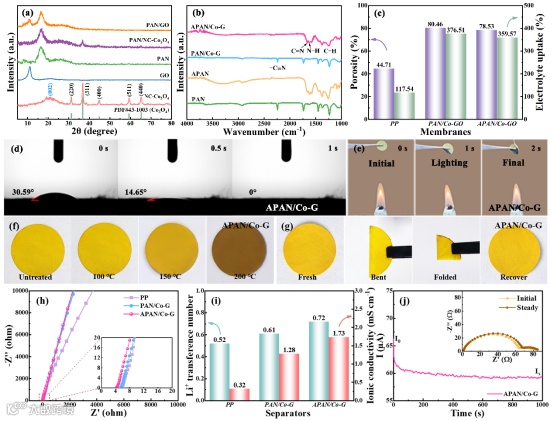 图3. APAN/Co-G隔膜的物相及物性表征。