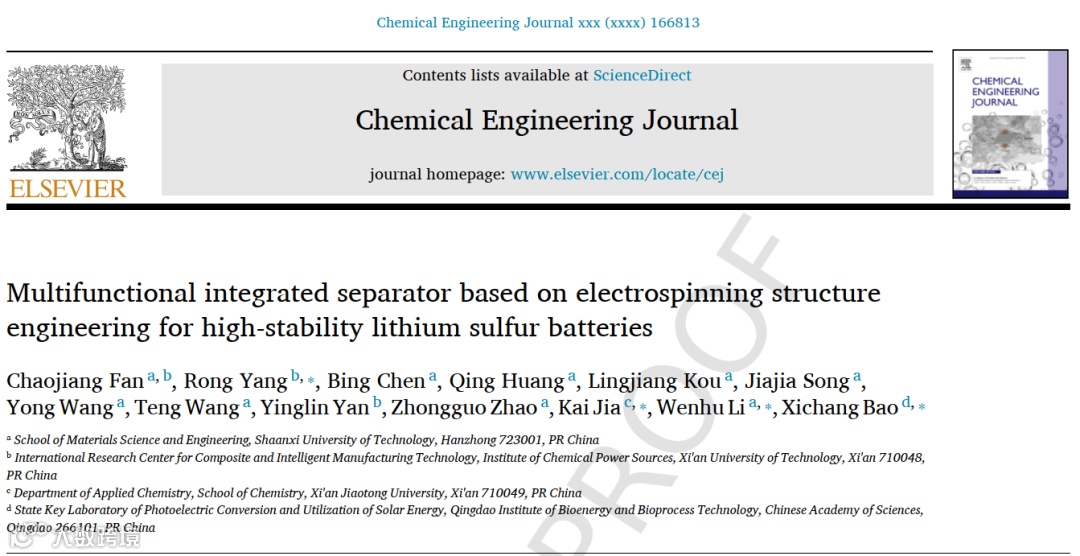 基于静电纺丝结构工程的多功能集成隔膜用于高稳定性锂硫电池