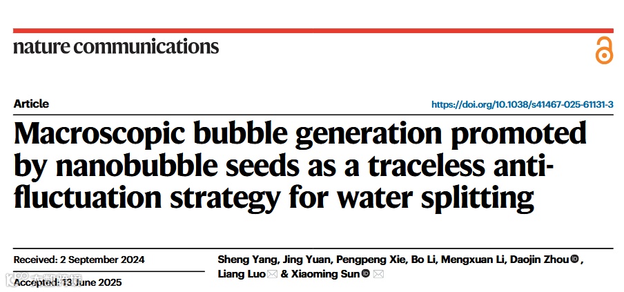 标题:Macroscopic bubble generation promoted by nanobubble seeds as a traceless anti-fluctuation strategy for water splitting