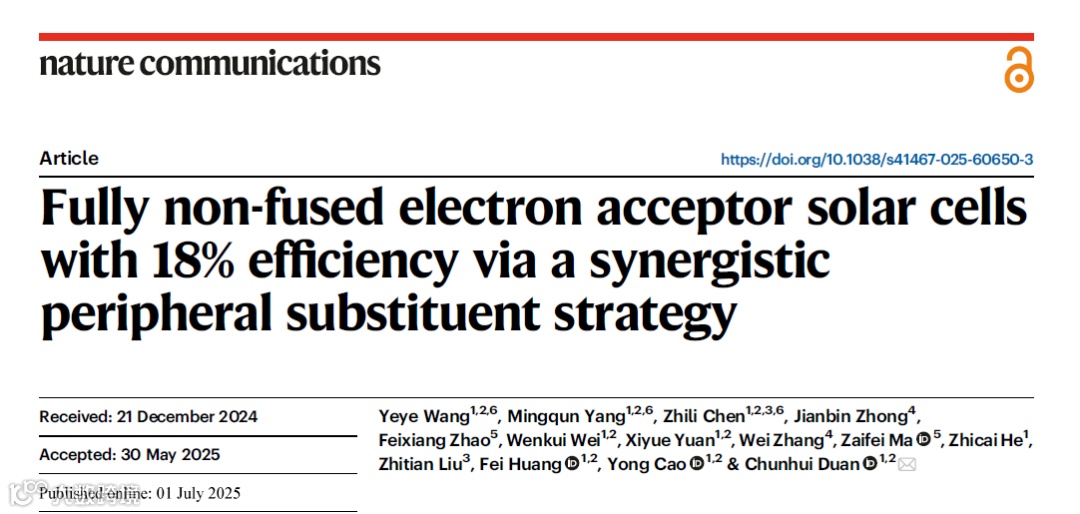 协同外围取代基策略助力完全非稠环电子受体太阳电池实现18%光电转换效率