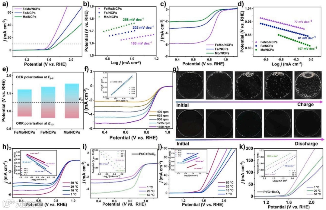 要点二:FeMo/NCPs在宽温范围内的ORR和OER性能