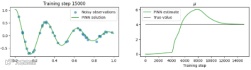 讲解如何通过物理信息神经网络在观测数据存在噪声的情况下识别出阻尼振动方程中的摩擦系数 𝜇。