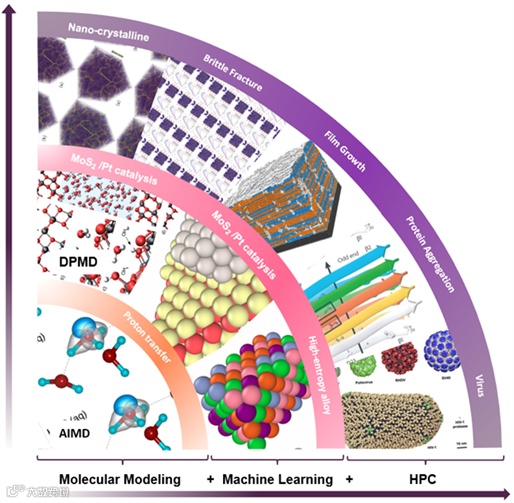d) 基于机器学习的分子动力学方法在各个领域的应用情况与发展趋势,以及相关支撑项目