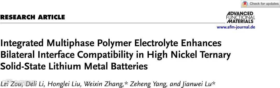 近日,合肥工业大学张卫新教授课题组,在国际知名期刊 Advanced Functional Materials 上发表题为“ Integrated multiphase polymer electrolyte enhancesbilateral interface compatibility in high nickel ternary solid-state lithium metal batteries”的研究论文。