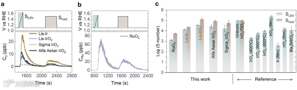 图 6:CFC-ICP-MS 溶解测试评估激光合成 Ir 和 IrO₂ 催化剂的稳定性