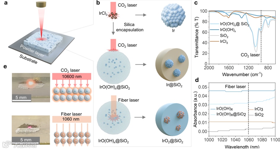 图一直观展示了通过不同激光波长控制加热路径,从而实现对材料相结构(Ir vs IrO₂)和晶粒尺寸的调控。CO₂激光适用于还原成金属铱,光纤激光则促进氧化铱的结晶化。这一策略为实现常温下可控、固态合成超小铱基纳米颗粒提供了技术基础。