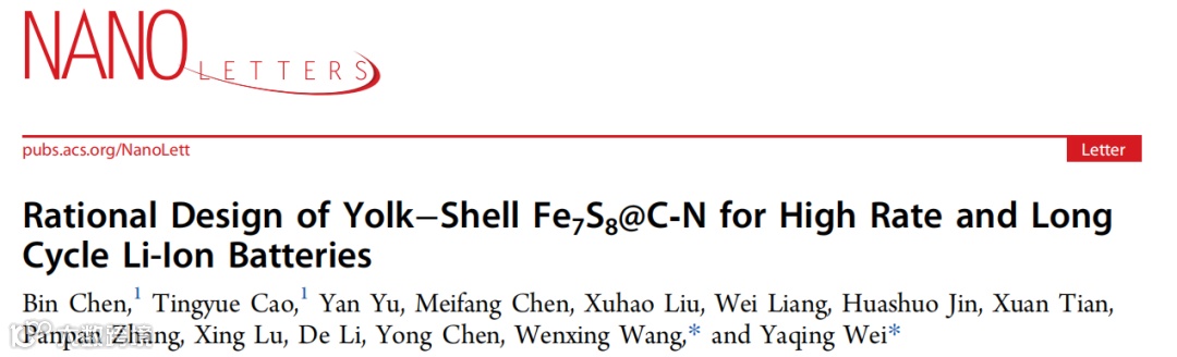 “Rational design of yolk-shell Fe7S8@C-N for high rate and long cycle Li-ion batteries”
