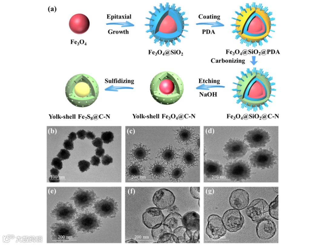 要点一:蛋黄-蛋壳式Fe7S8@C-N核壳结构材料的设计制备