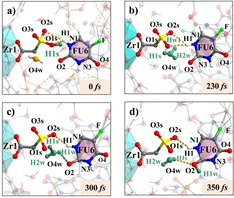 图3水合FU@MOF-808-SO3H的Grotthuss机制转运路径