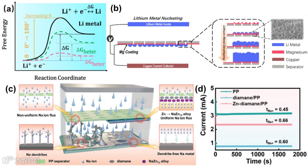 图7. 隔膜表面修饰金属颗粒材料的设计策略及机理