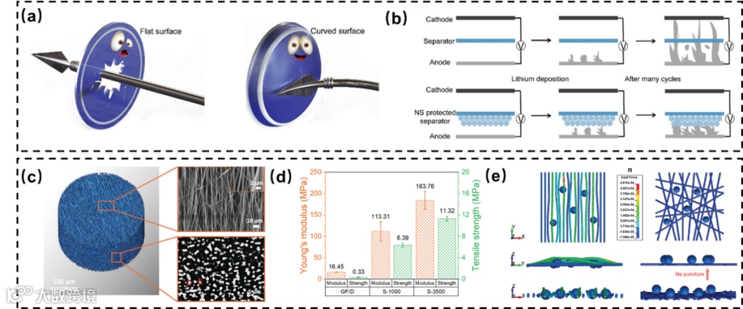 当负极生长尖锐枝晶或电池处于极端温度环境(过热 / 冷冻)时,商用PP、GF隔膜的机械与热学性能不足易引发安全隐患。因此,引入高机械强度与优异热稳定性的材料是提升隔膜热力学性能的核心策略: