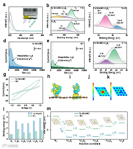 图2. Ta-SAs/NC催化剂对多硫化锂的吸附和催化转化性能。