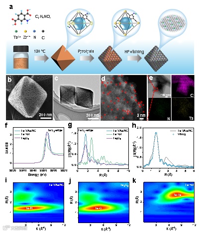 图1. Ta SAs/NC单原子催化剂的制备流程和原子结构分析。