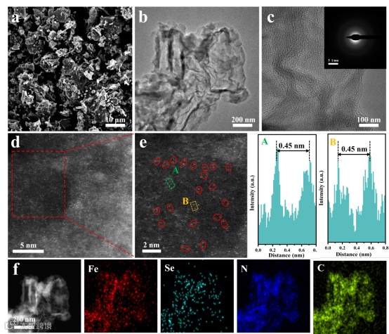 图2. Fe/Se-NC的形貌表征。