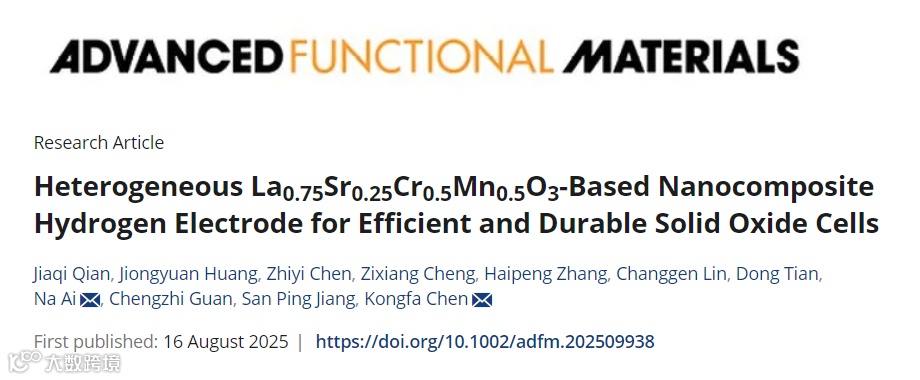 “Heterogeneous La0.75Sr0.25Cr0.5Mn0.5O3-Based Nanocomposite Hydrogen Electrode for Efficient and Durable Solid Oxide Cells”, Adv. Funct. Mater. 2025, e09938.