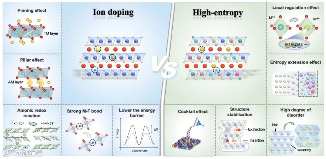 该分类体系不仅有助于厘清高熵策略与传统掺杂方法之间的边界,也为不同类型层状氧化物正极材料的定向设计与性能提升提供了理论基础和策略参考。
