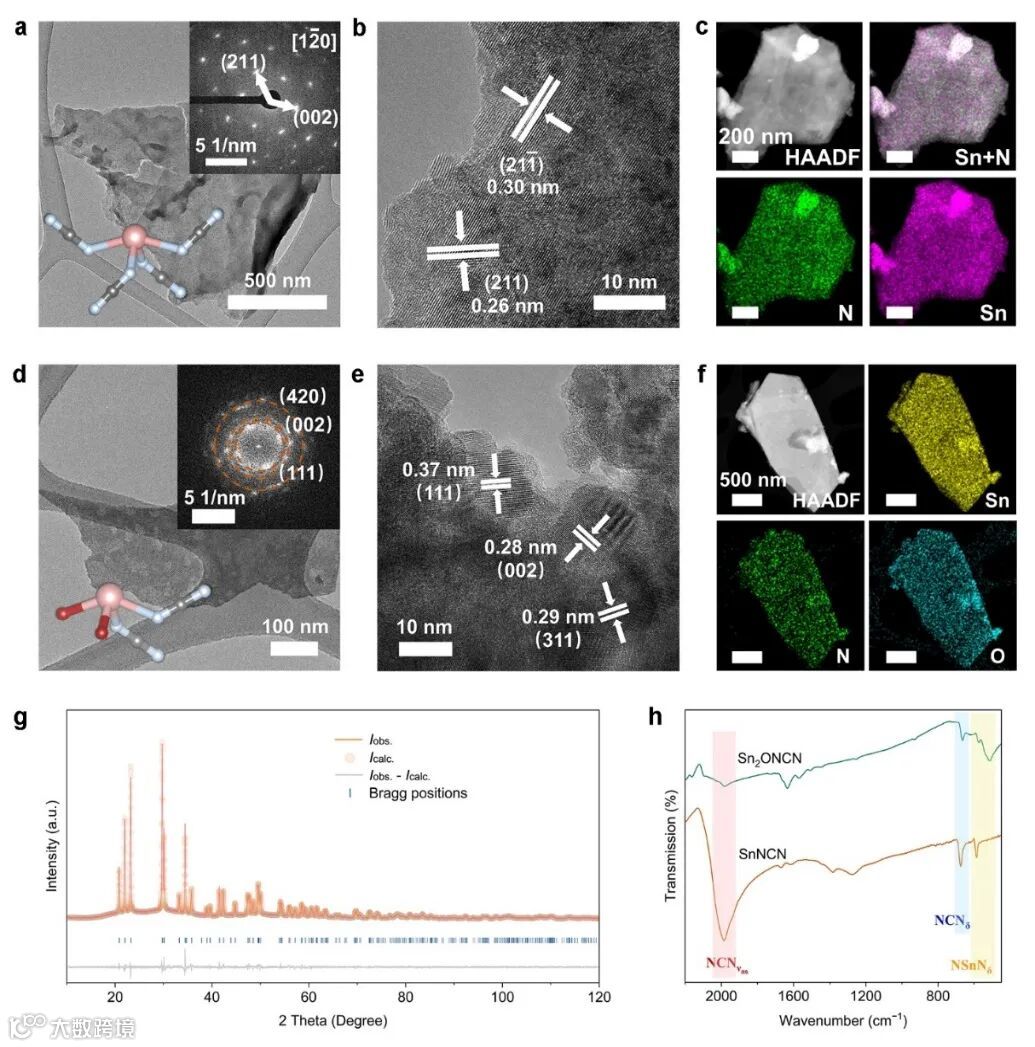 图2:SnNCN和Sn2ONCN的结构、形态和组成表征。